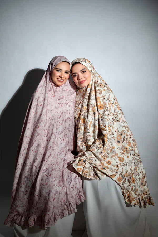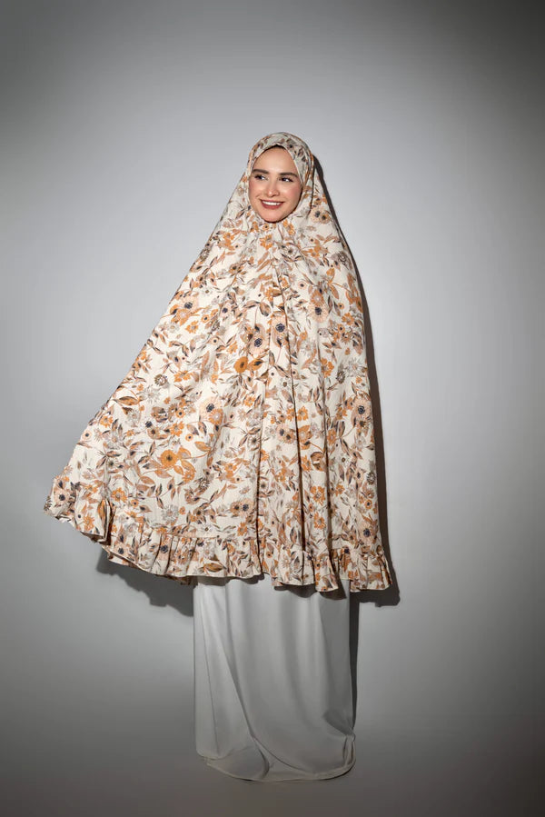Floral printed isdal with soft earthy tones and ruffled hem
